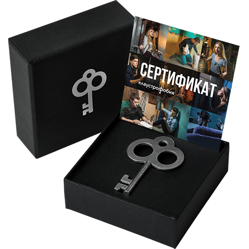 Этот набор действительно очень приятно дарить! Красивая коробка, металлический ключ… И конечно, впечатления. Наш сертификат — это самый настоящий пропуск к новым впечатлениям и эмоциям. Выбирайте любой квест на команду от 2 до 4 человек, бронируйте удобное время и приходите играть. Сертификатом может воспользоваться любая команда, но только один раз и только в том городе, где он был приобретен.А на нашем сайте можно приобрести электронный сертификат: карточка с кодом на игру придет вам на e-mail. Распечатайте ее или перешлите любым удобным способом своим друзьям и близким.